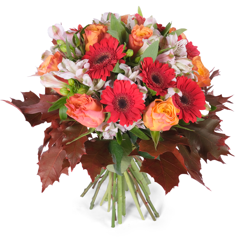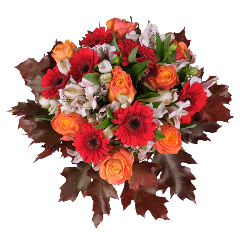 Kolorowa jesień to bukiet pachnący wilgotną ziemią i liśćmi. Róże przypominają ciepło ostatnich promieni słońca, gerbery wnoszą radość, alstromerie dodają delikatności. Możesz wysłać prezent anonimowo lub podpisać się w bileciku.