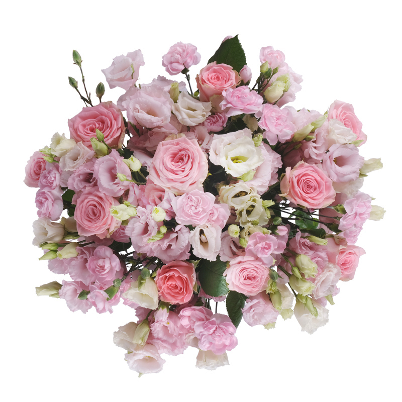 Utrzymany w pastelowych różach bukiet „Połączenie idealne” jest kwiatowym symbolem delikatności. Róże, eustomy i goździki z bilecikiem stworzą wyjątkowy gest.